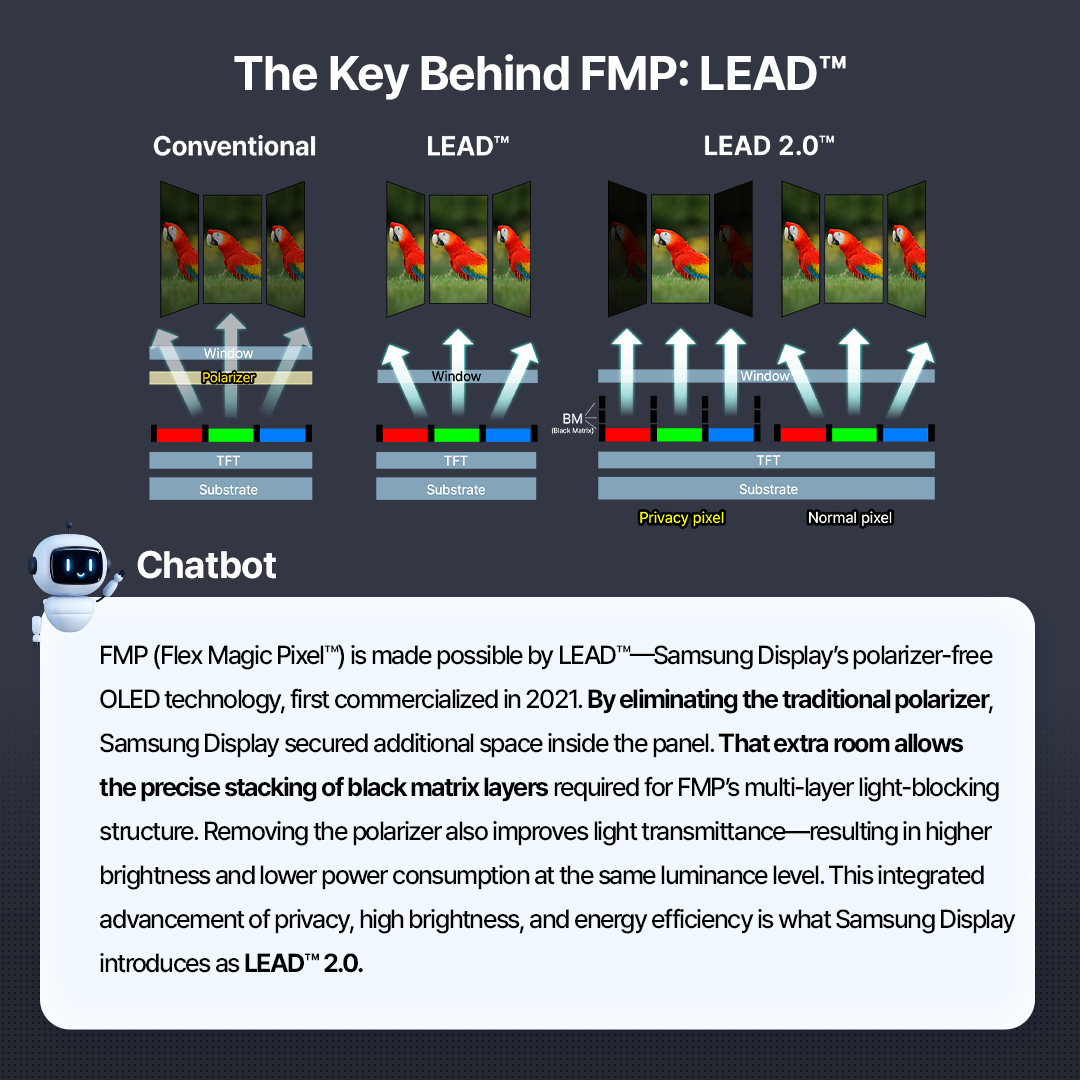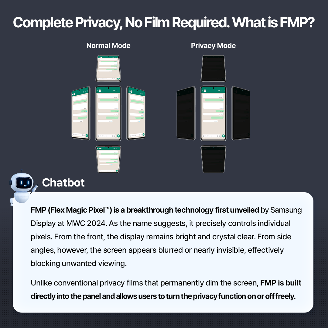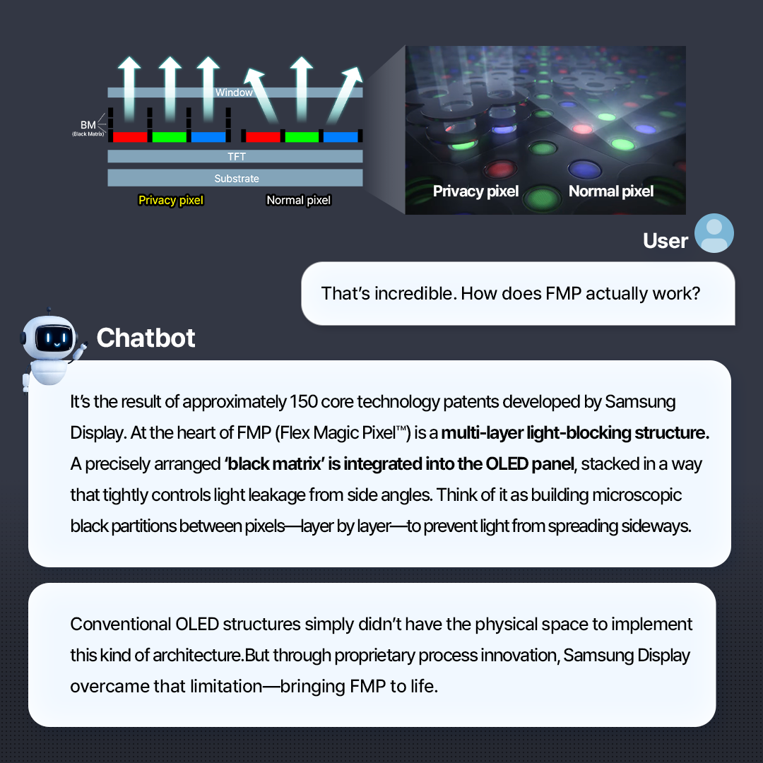 Chatbot Presents A New Standard in Privacy–Samsung Display FMP(Flex Magic Pixel™) Technology